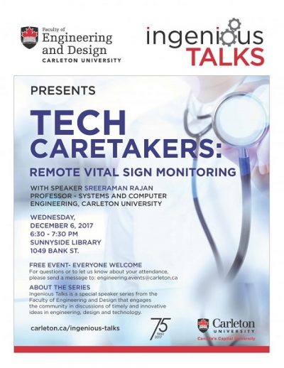 Sreeraman Rajan public seminar. "Tech Caretakers: Remote Vital Sign Monitoring"