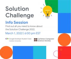 We are kicking off the Google Solution Challenge 2022 at Carleton! Teams of 4 will partake in a global challenge run by Google Developers with the goal of developing a project using Google Technology to help build a solution for one or more of the United Nations’ – 17 sustainable Development Goals. Think of it as a month-long project competition and a great opportunity to develop your skills as a developer while working in a team. Top 50 teams worldwide receive prizes! (Learn more at goo.gle/solutionchallenge)
