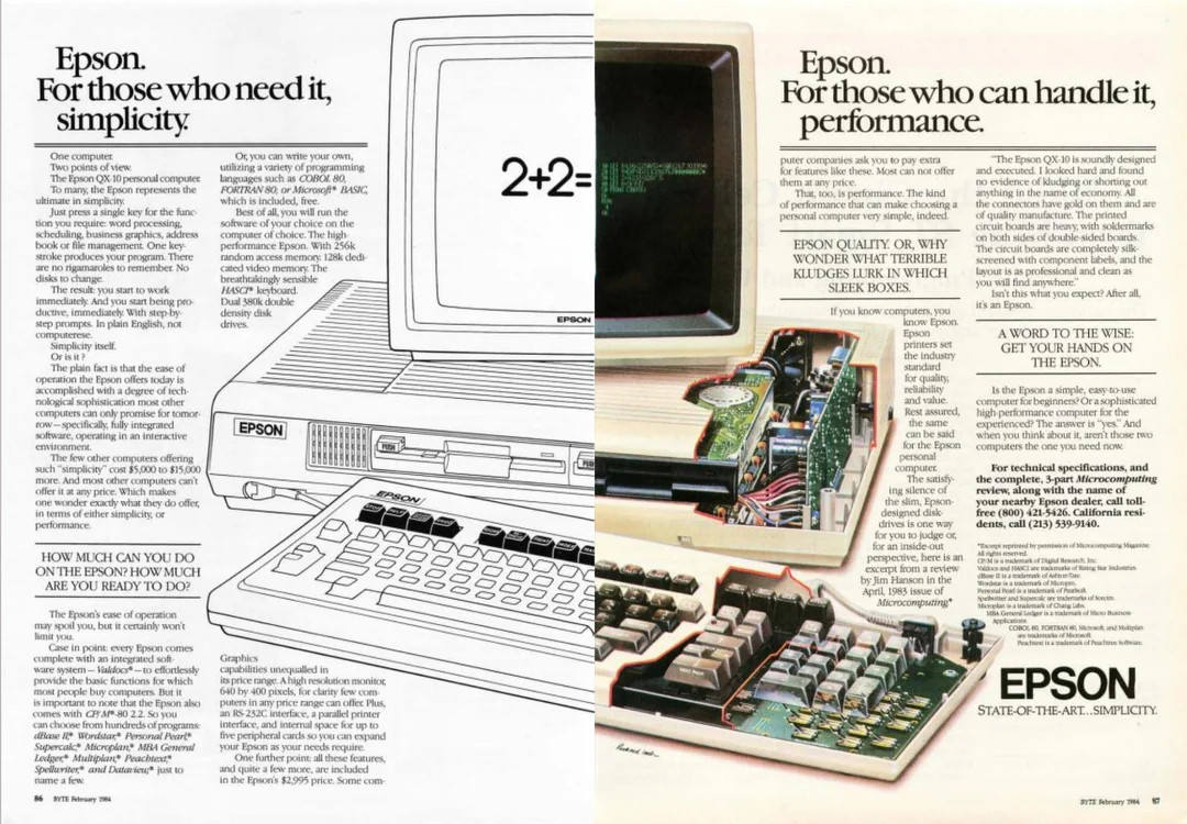 - The Epson QX-10 used the NEC µPD7220 graphics chip, one of the earliest graphics controllers, enabling advanced bitmap displays uncommon in 8-bit machines.