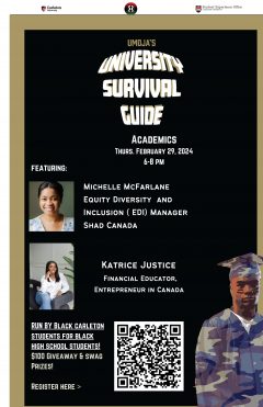 Thinking about going into post-secondary? How do you know what courses to take? What should you expect in your classes? How do you build better study habits? Come and get your questions answered about all things academic in a safe environment catered for you by Black university students. Through presentations and spotlights on the academic resources available at Carleton, this chapter will give you the tools you need to succeed in a post-secondary institution.