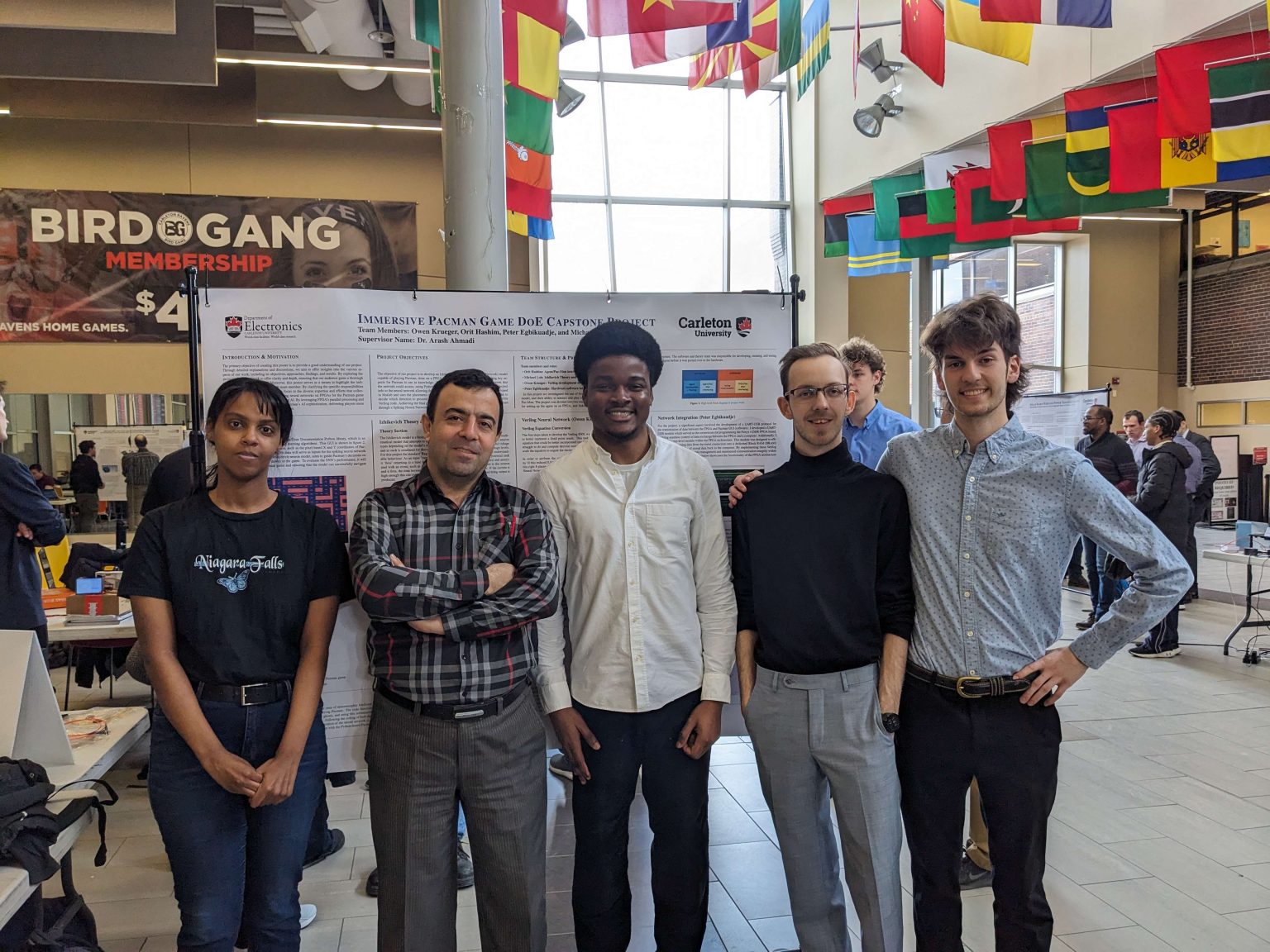 The 2023-2024 Capstone project team of Owen Krueger, Orit Hashim, Peter Egbikuadje, and Michael Loh, supervised by Dr. Arash Ahmadi, developed an innovative Immersive Pacman Game. In this project Spiking Neural Networks (SNN) implementation on FPGA are used to control an intelligent agent (Pacman) in real-time. Unlike traditional AI methods relying on rule-based or deep learning approaches, this project leverages SNNs to emulate a bio-inspired approach for navigating the maze, avoiding ghosts, and collecting food!