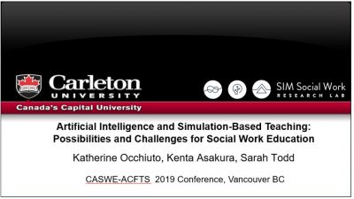 The SIM Social Work Research Lab team just returned from beautiful British Columbia for CASWE at Congress 2019. Kenta, Sarah and Katherine presented on their work using AI to create foundational learning opportunities, and Kenta and Sarah presented an additional paper on teaching clinical social work from a social justice perspective (a copy is available here). We will keep you posted on when both papers become available.