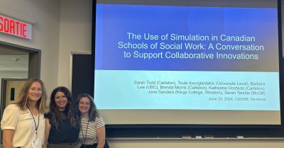 We also facilitated a conversation circle on the use of simulation in Canadian schools of social work. It was wonderful to hear about the ways simulation is being engaged with across Canada, and we look forward to ongoing dialogue and collaboration.
