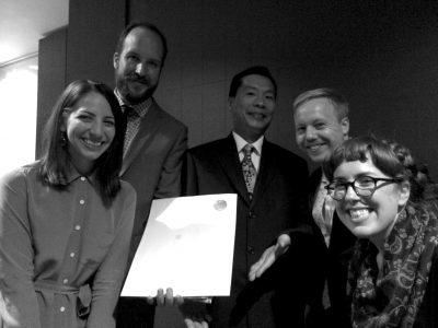 The Feathertale team in 2015 after winning silver for single best issue at the NMAs