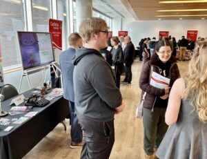 The program and networking fair took place in the Richcraft atrium from 9:30 to noon, with a table and representatives for every Carleton program.