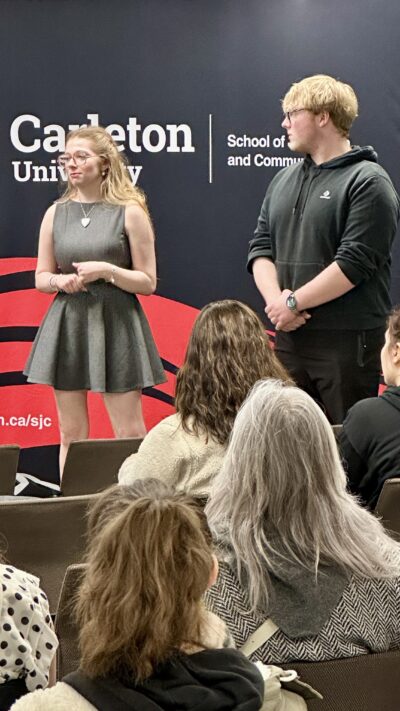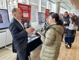 The recruitment fair was staged all over the Carleton campus, with presentations for the Faculty of Public and Global Affairs clustered in Richcraft Hall, also home to the School of Journalism and Communication.