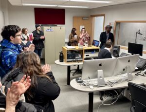 More than 90 participants registered for Journalism studio tours that took place between 2 p.m. and 3:30. Participants started in either the audio studio or video studio, then swapped places after 45 minutes.