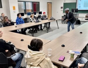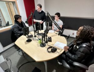 During the hands-on workshops, Adrian Harewood provided a primer on audio storytelling, followed by a mock radio newscast workshop led by audio technologist David Sarazin.