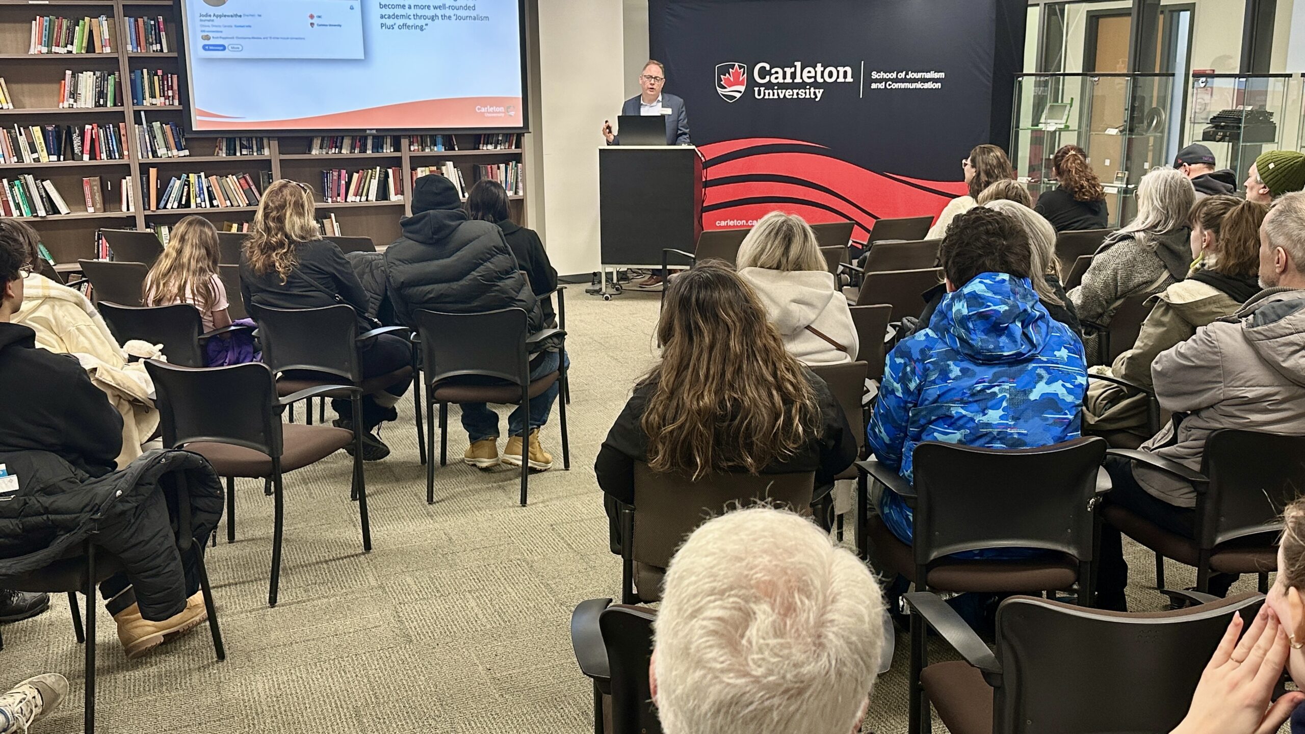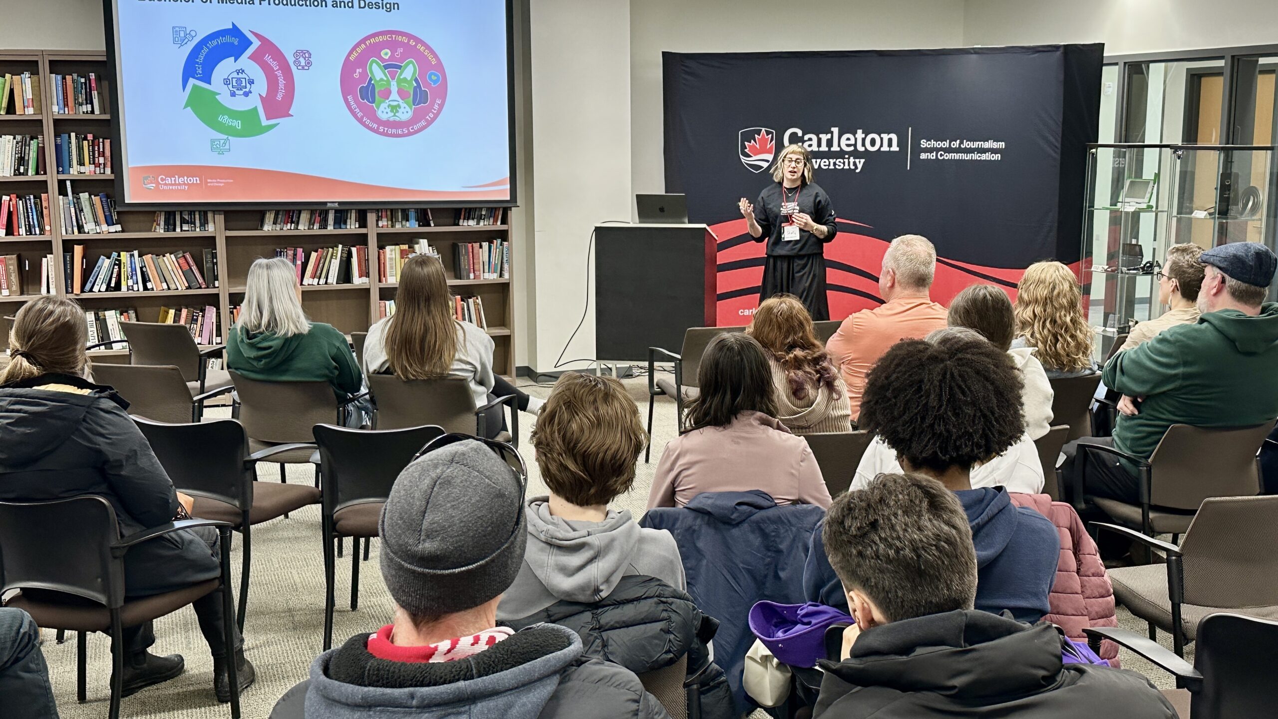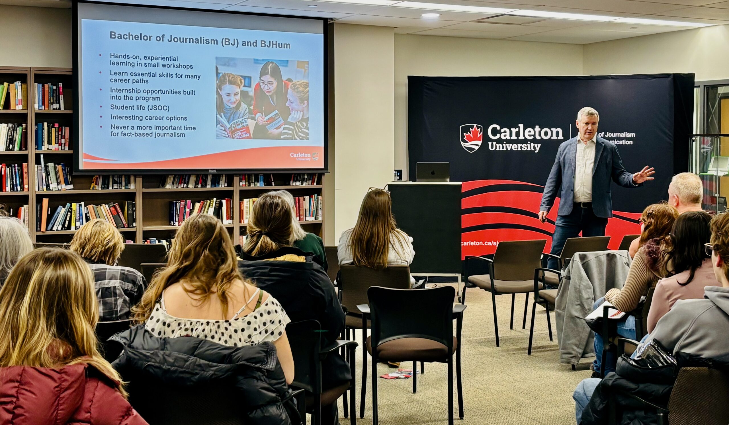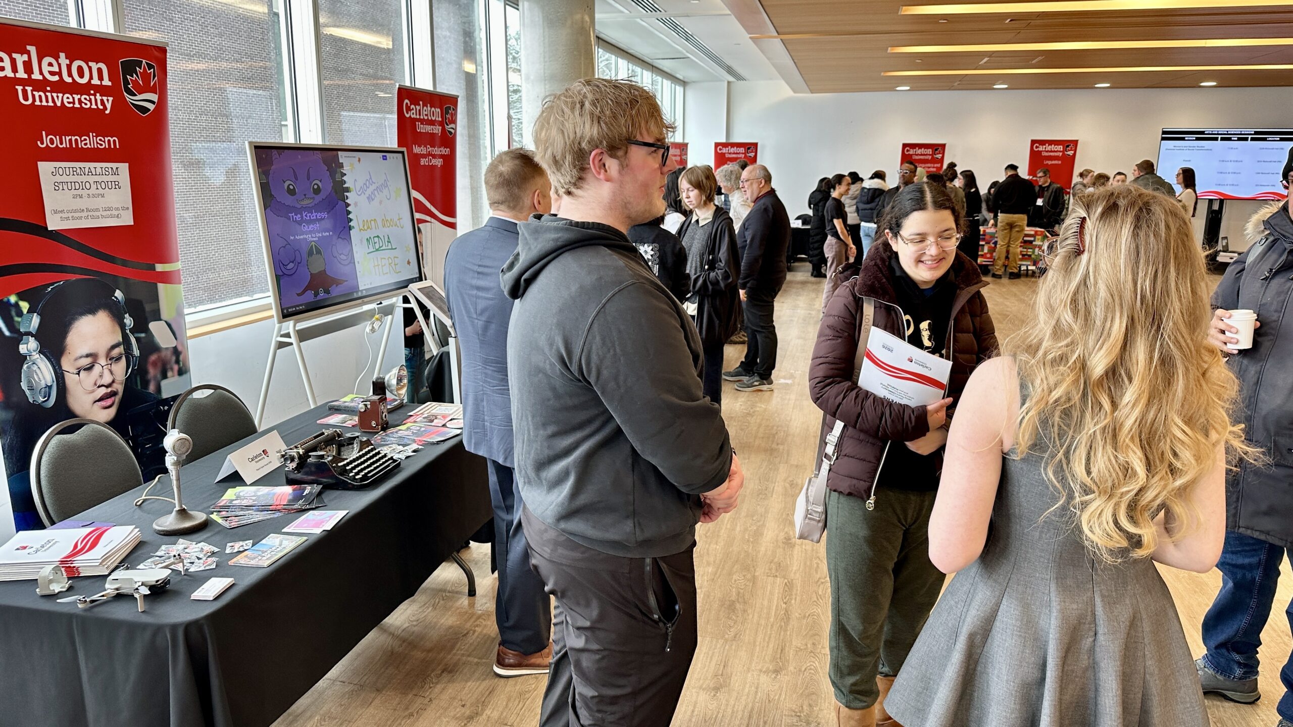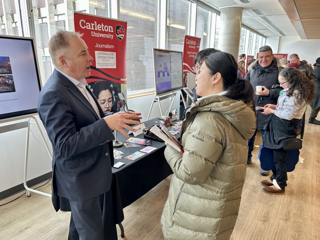 The recruitment fair was staged all over the Carleton campus, with presentations for the Faculty of Public and Global Affairs clustered in Richcraft Hall, also home to the School of Journalism and Communication.