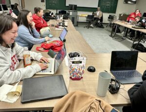 And as a special treat on Wednesday night – in the midpoint of a very busy week – students got a chance to kick back and have a laugh during comedy night hosted in the journalism program’s resource centre. Comedians Janelle Niles and Randy Schmucker delivered a comedy set as part of the Got Land? Indigenous Comedy Group.