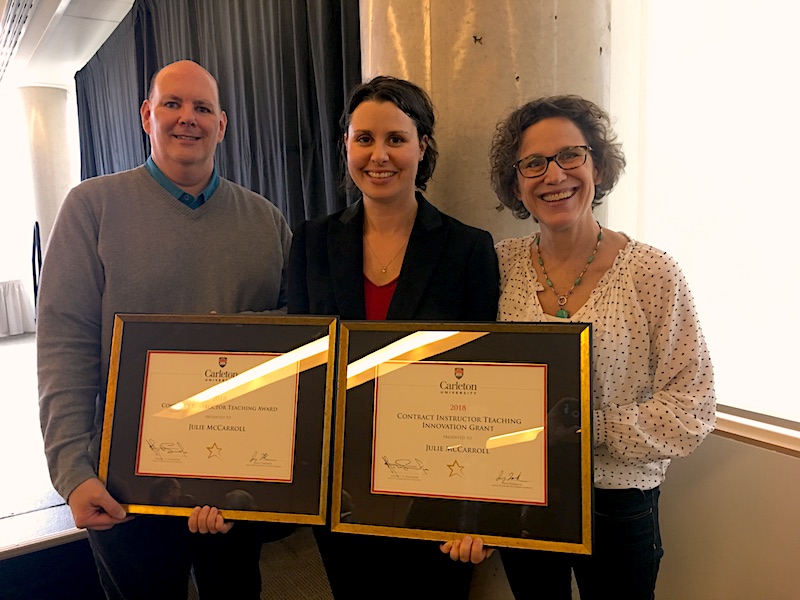 McCarroll was also a recipient of a Contract Instructor Innovation Grant for her ongoing research of the effectiveness of ePortfolios as a pedagogical practice. The intention of this award is to support research by contract instructors into student learning and alternative approaches to teaching and assessment. Overall aims are to foster deep student learning at Carleton University and promote curiosity, reflection, and exploration in the areas of teaching and learning.