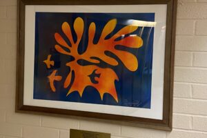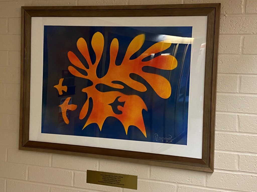 Artwork by Kitigan Zibi Anishinabeg artist Simon Brascoupé installed with a plaque
