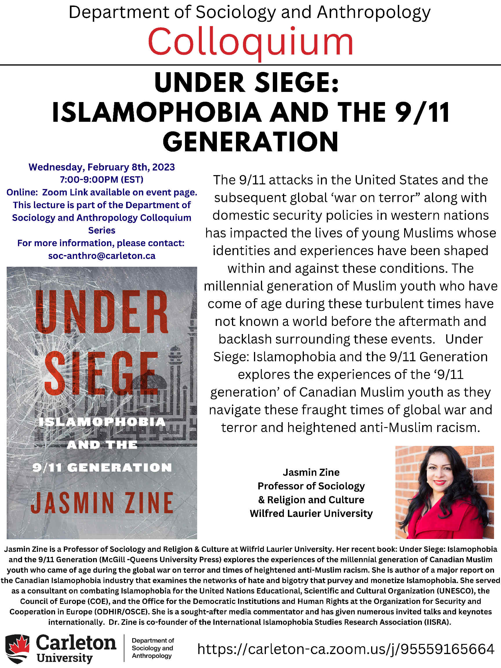 As part of the Department of Sociology and Anthropology Colloquium Series, Jasmin Zine presents “Under Siege: Islamophobia and the 9/11 Generation“