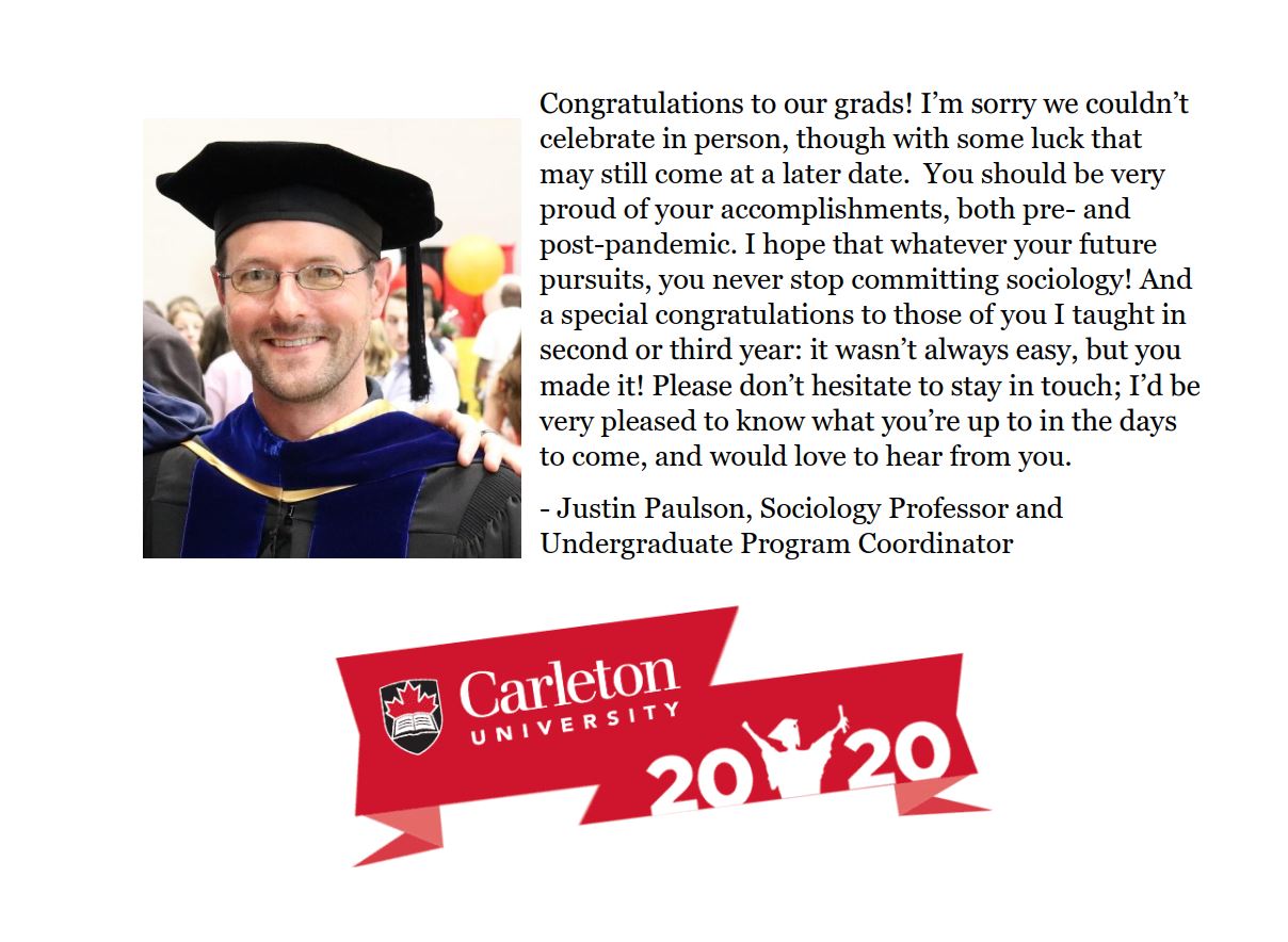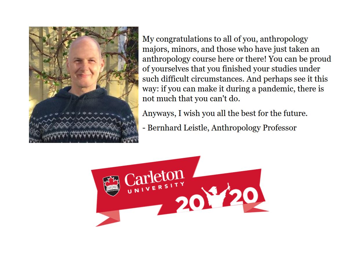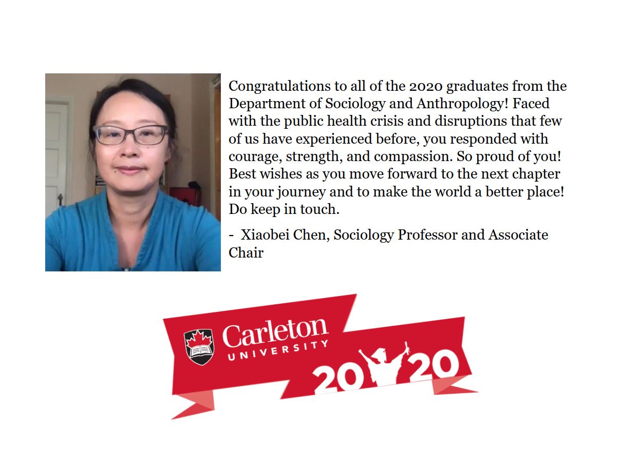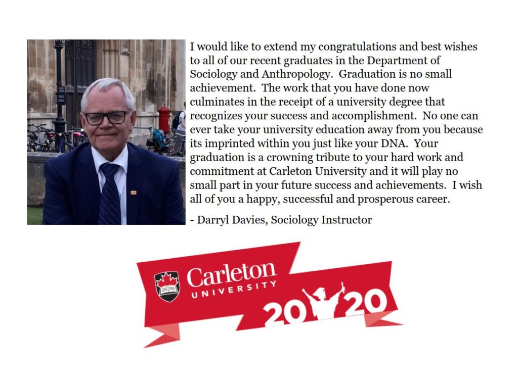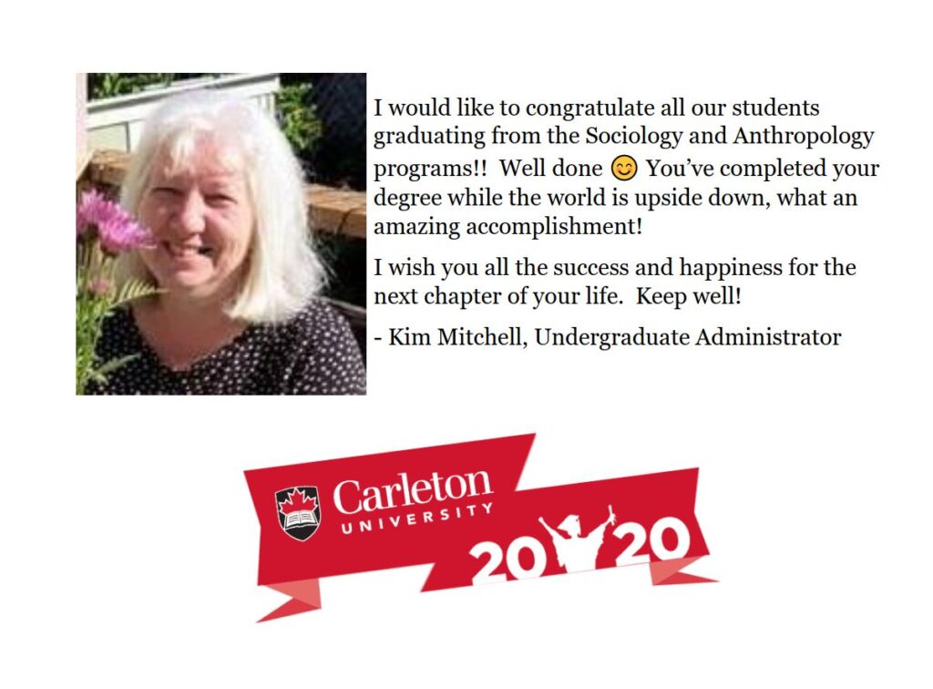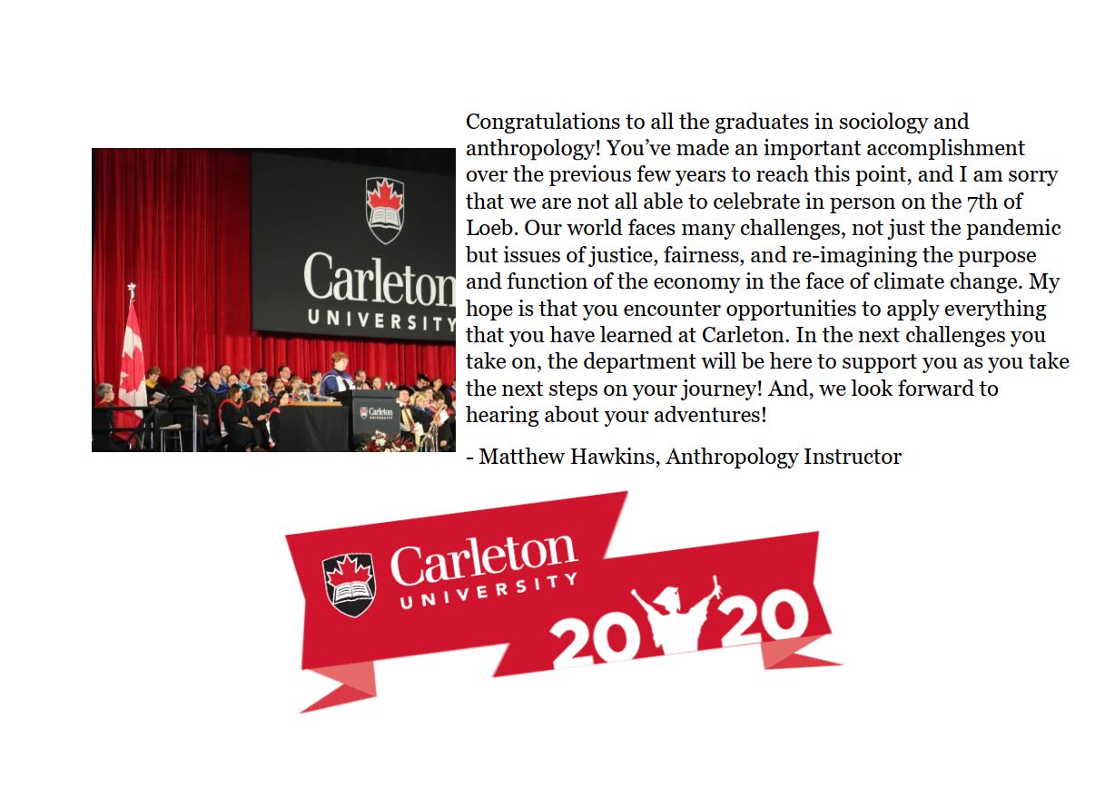 Join the Department of Sociology and Anthropology on social media by using the hashtag #CarletonGrads2020