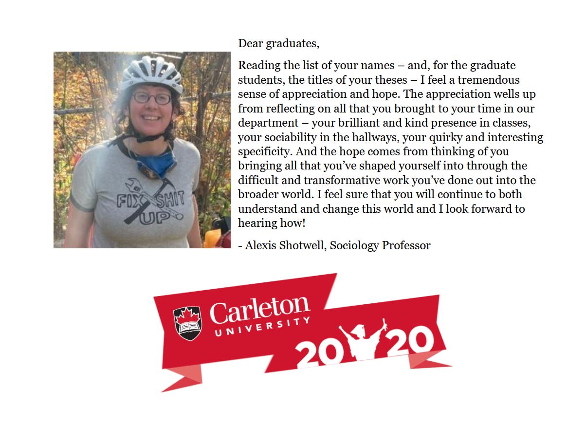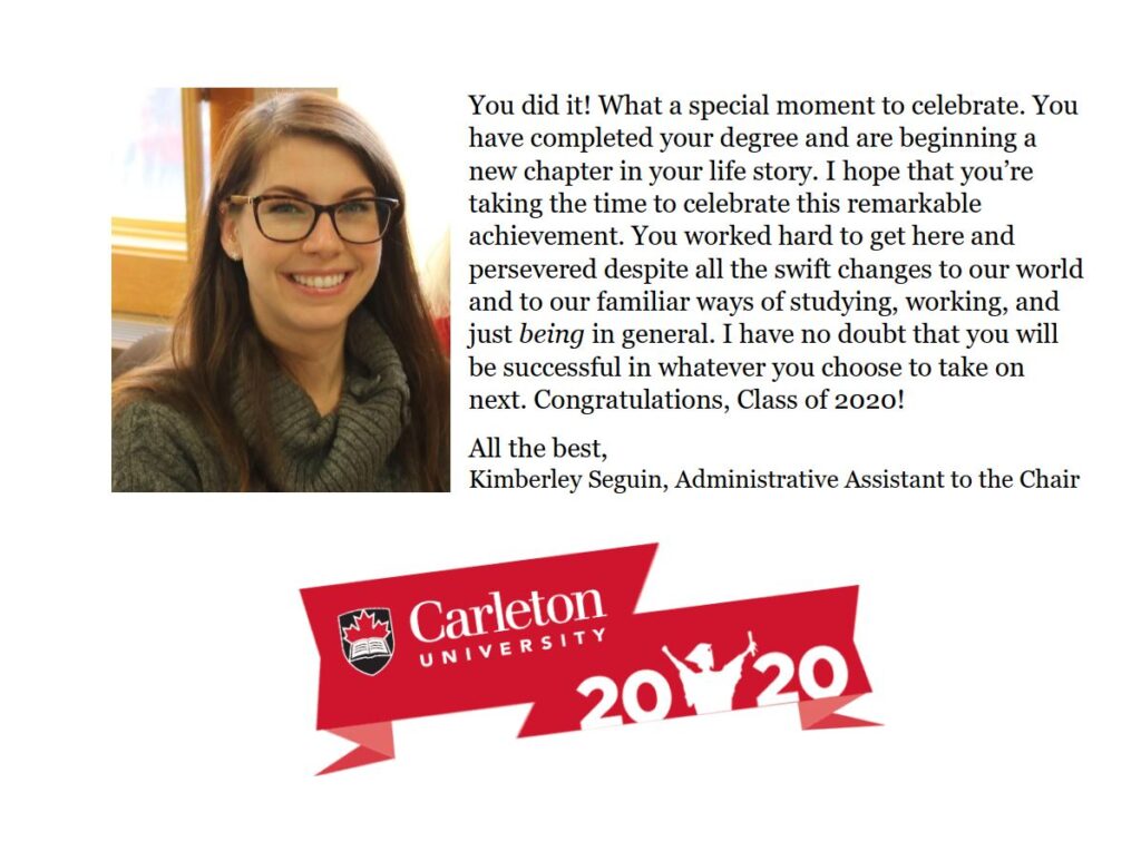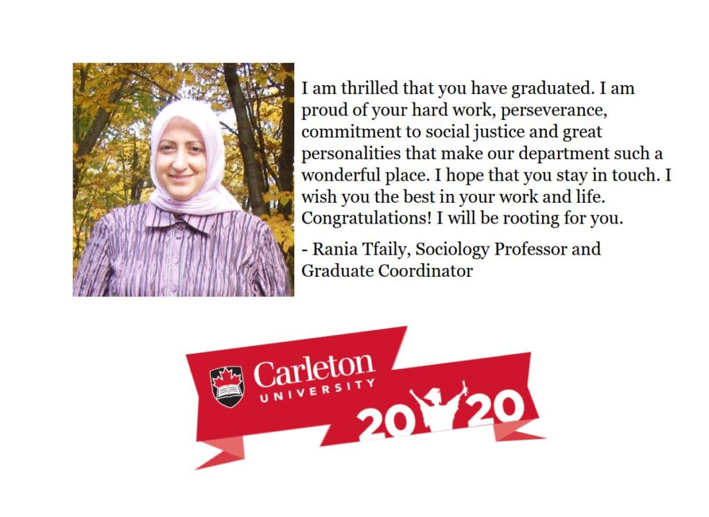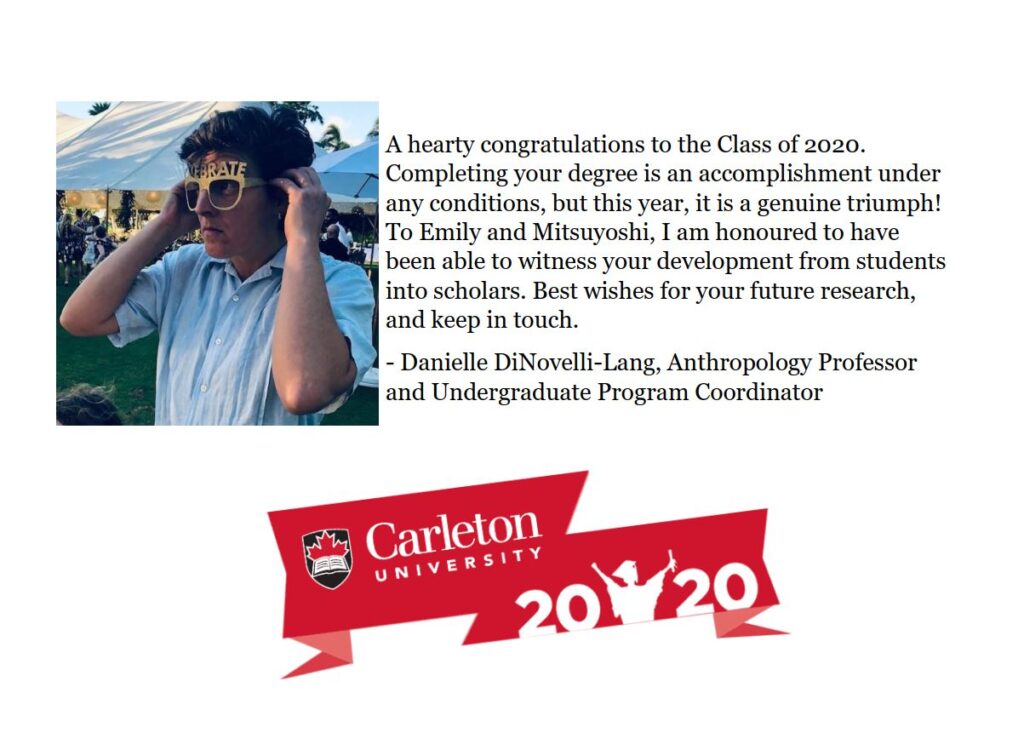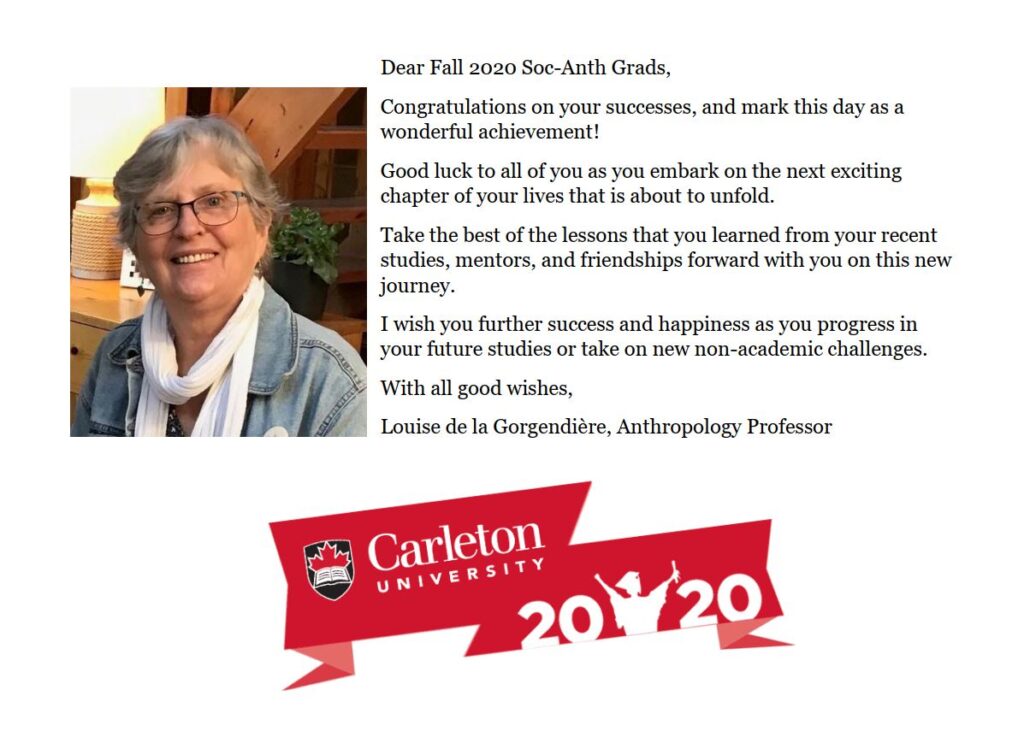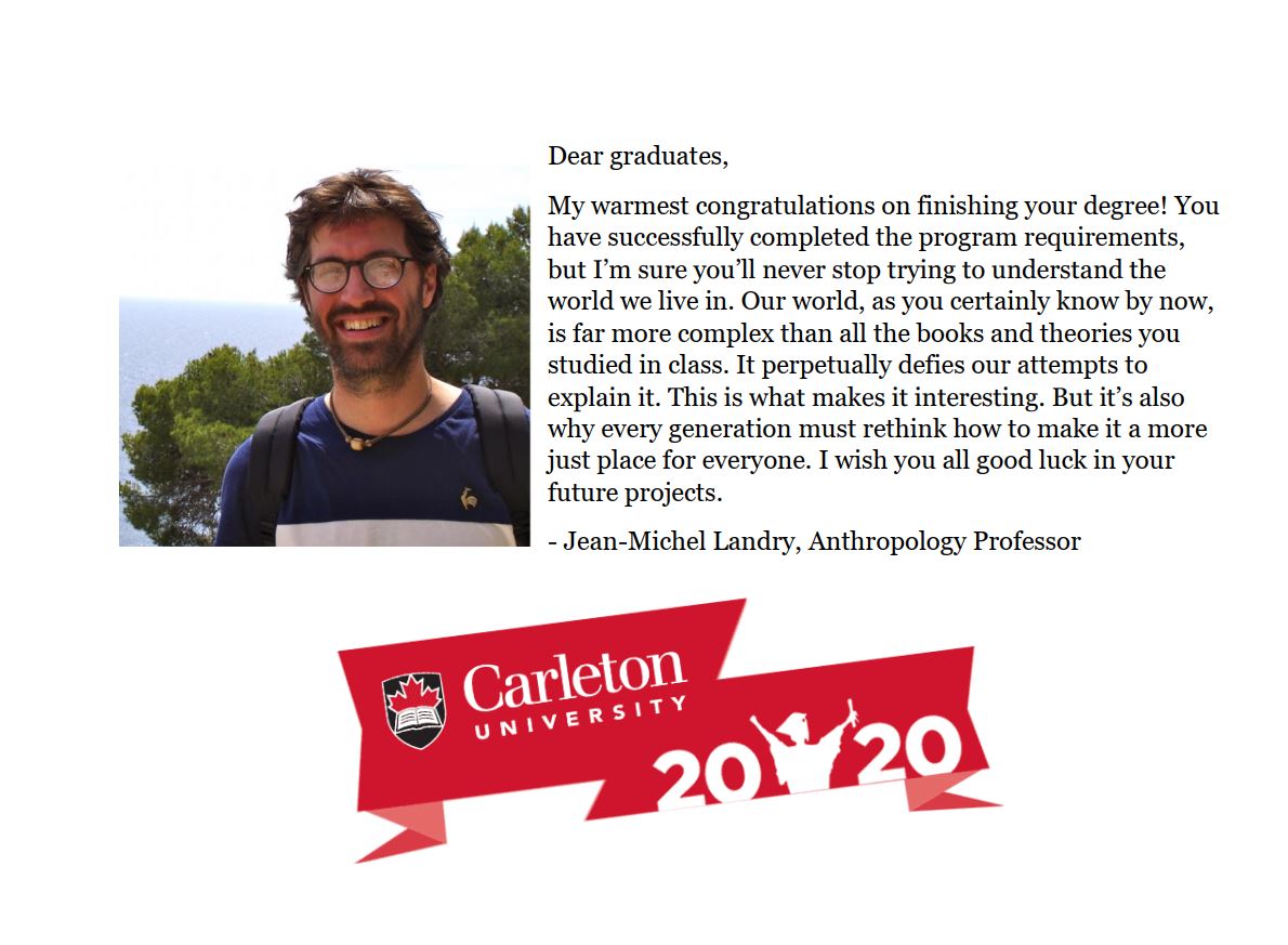 Join the Department of Sociology and Anthropology on social media by using the hashtag #CarletonGrads2020