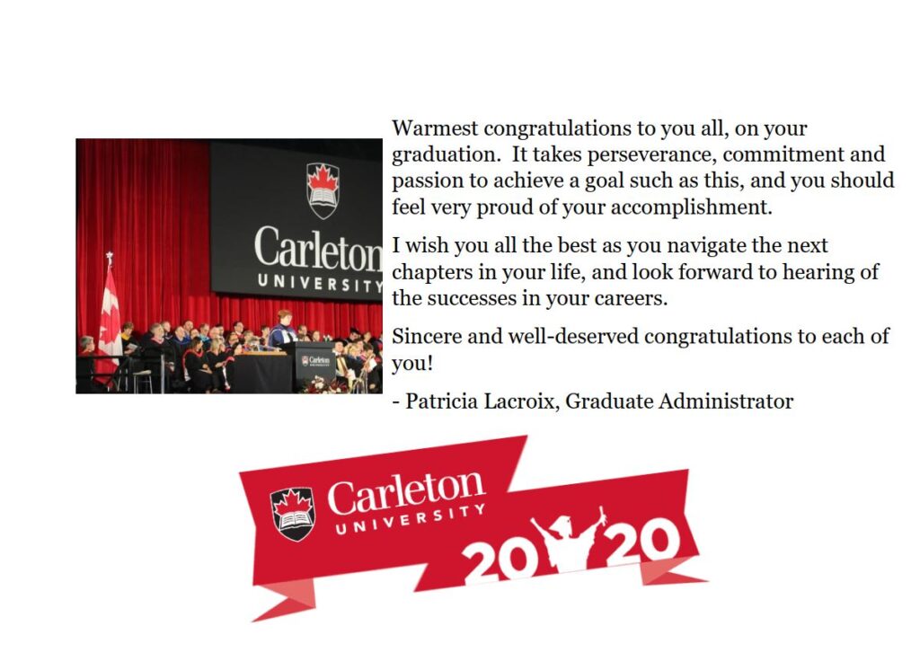 On October 30, 2020, Carleton University’s Senate officially conferred the degrees of 752 undergraduate students and 484 graduate students.