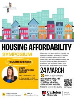 The Centre for Studies on Poverty and Social Citizenship (CSPSC) is excited to invite you to our upcoming symposium, themed From Housing Crisis to Affordable Housing: Organizations rallying together, strengthening capacities and addressing the housing crisis in Ottawa. The event will take place on Tuesday, March 24, from 8:30 a.m. to 2:00 p.m. in Richcraft Hall,2nd Floor, Room 2220.