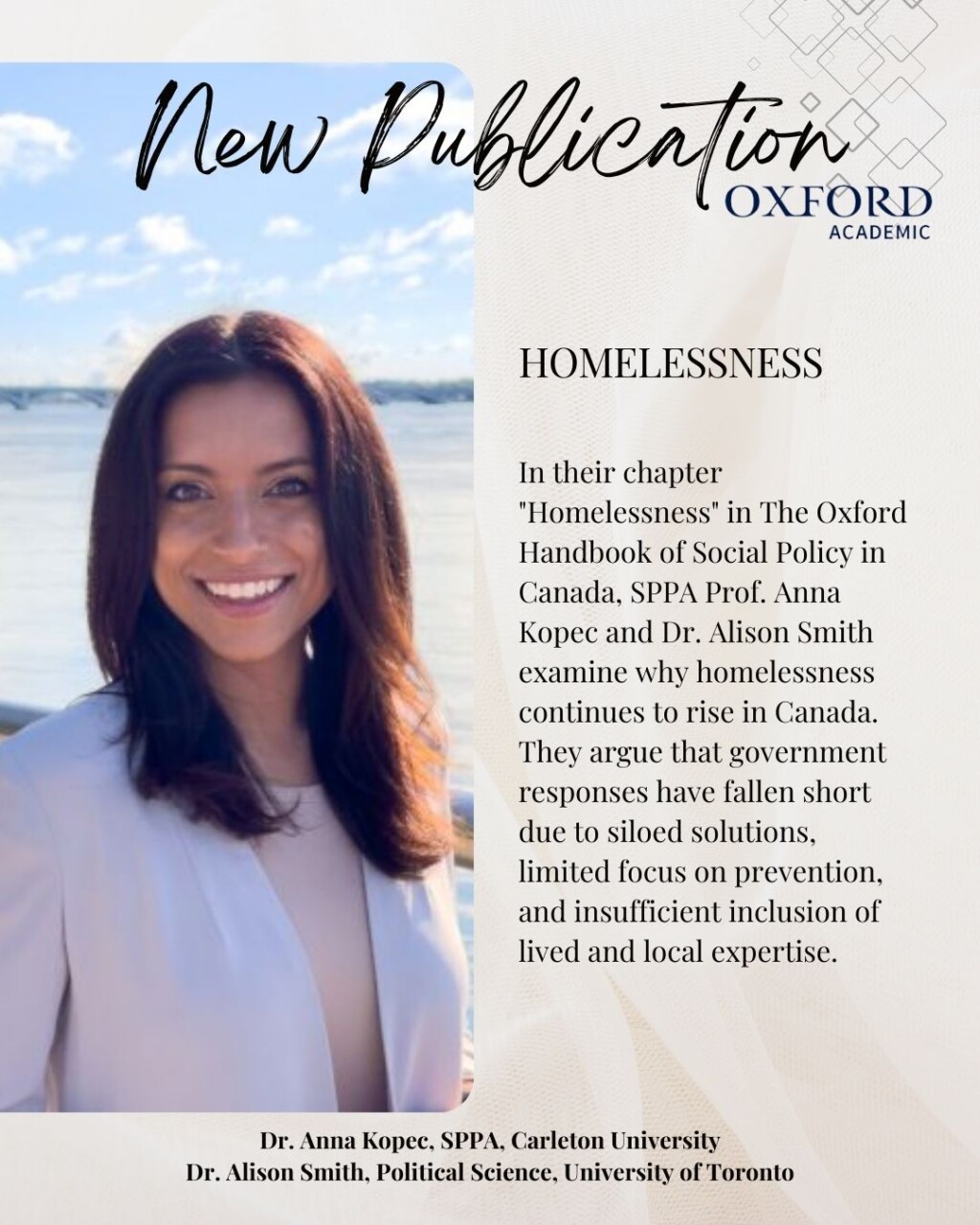 SPPA Professor Anna Kopec, along with University of Toronto Professor on Alison Smith, has contributed an insightful chapter to the Oxford Handbook of Social Policy in Canada titled "Homelessness".