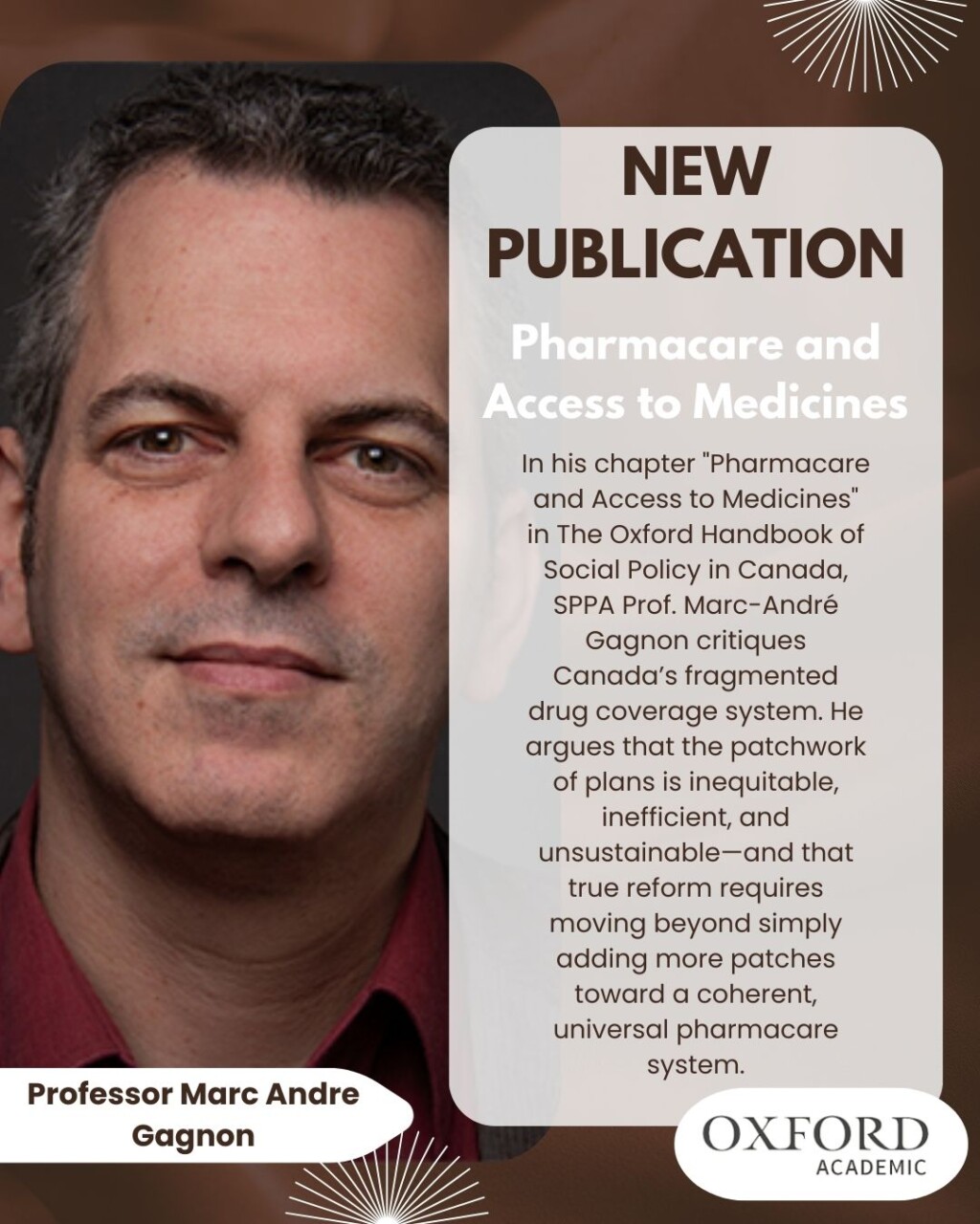 SPPA Professor Marc-André Gagnon has just published a compelling new chapter in The Oxford Handbook of Social Policy in Canada titled "Pharmacare and Access to Medicines"