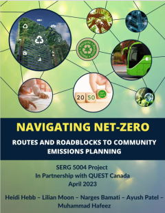 Given Canada’s federal target of achieving net-zero emissions by 2050, community efforts to reduce emissions are critical. Communities are responsible for over 50% of Canada’s energy use and GHG emissions (QUEST, n.d.). Given this, this report aims to identify barriers and routes for Canadian communities to initiate and implement net-zero emissions plans. In partnership with QUEST Canada, six unique Canadian communities were interviewed with a series of questions to better understand the community’s aptitude in net-zero planning and various roadblocks to achieving their goals. As a practice in net-zero planning, a case study was undertaken based on common barriers that the interviewed communities face. This exercise examined a case where in Grande Prairie, an oil and gas resource-rich region, 50% of the pick-up trucks were electric vehicle models, with the hope to foster more conversation on the issue.