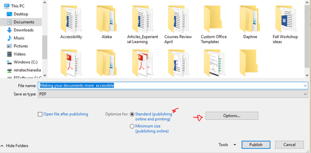 - Make sure the option Document structure tags for accessibility is selected, and then click OK