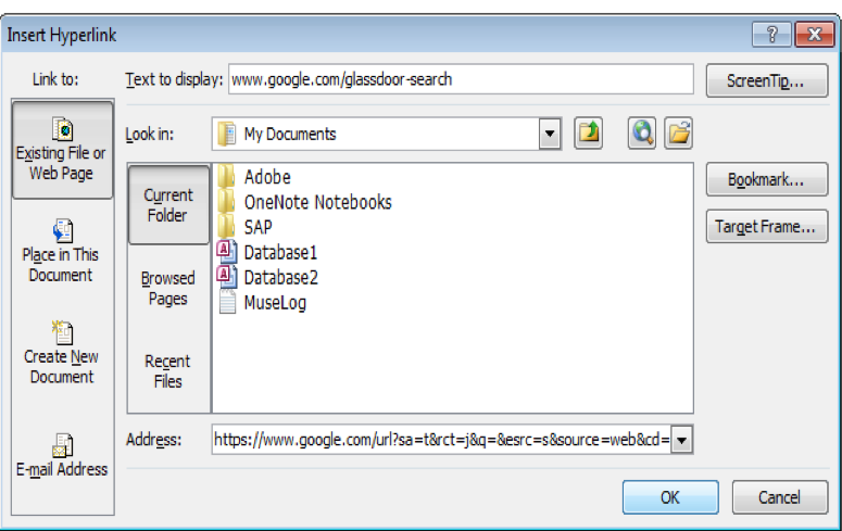 - In the Address box, type in the link URL (or simply copy and paste the URL)