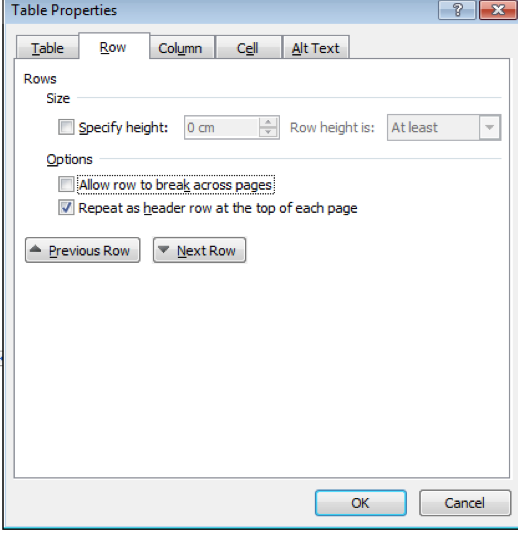 Having the header row repeat across the pages of the document is extremely important. Whenever a table appears in two or three pages, it is necessary that the header row repeats so the information on each column is clear to learners.