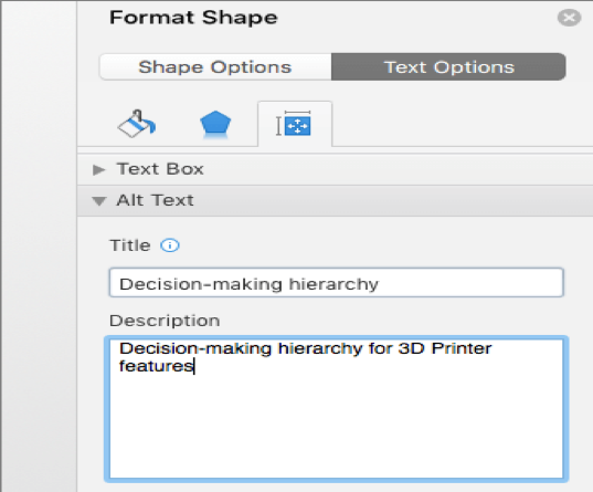 - Groups (all objects in this list, with the exception of shapes, should also have alt text when in groups)