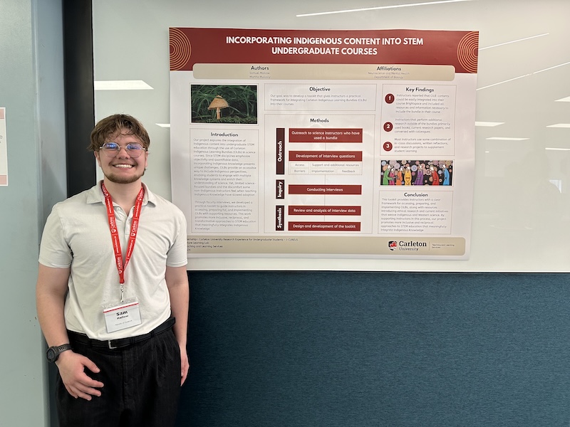 Sam Mallow worked with Prof. Martha Mullally to examine the integration of Indigenous Knowledge into undergraduate STEM courses through the Collaborative Indigenous Learning Bundles. Through interviews with professors, they identified barriers and successful strategies for implementing the Bundles and then developed a practical toolkit to support instructors with incorporating Bundles into their own courses.