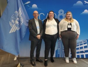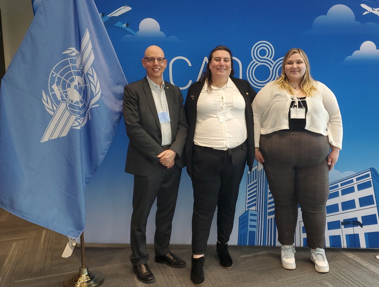 From May 19th to May 23rd, 2025, Rory Palau Zea and Jaimi Plater, SPPA students in the MPPA, joined a team of law students from the University of Ottawa (UofO) to participate in the prestigious Model ICAO event at the world headquarters of the International Civil Aviation Organization (ICAO) in Montréal. It was the first time that SPPA students were participating in this experiential learning activity. Dr. Marc Rioux, Adjunct Research Professor and Executive Director of SPPA’s Transportation Policy Innovation Centre, accompanied them and acted as technical advisor for the joint Carleton/UofO team.