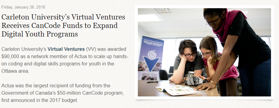 Carleton University’s Virtual Ventures Receives CanCode Funds to Expand Digital Youth Programs