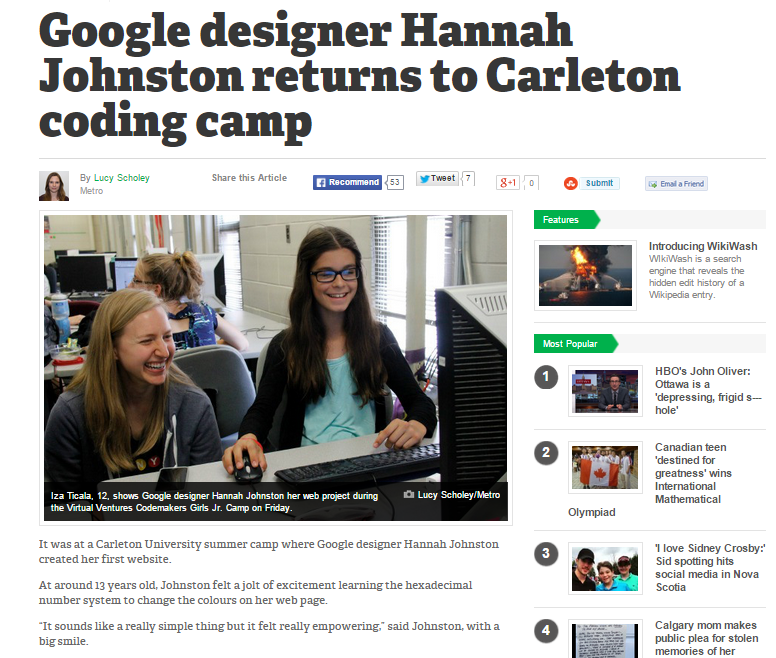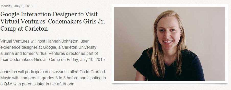 Google Interaction Designer to Visit Virtual Ventures’ Codemakers Girls Jr. Camp at Carleton